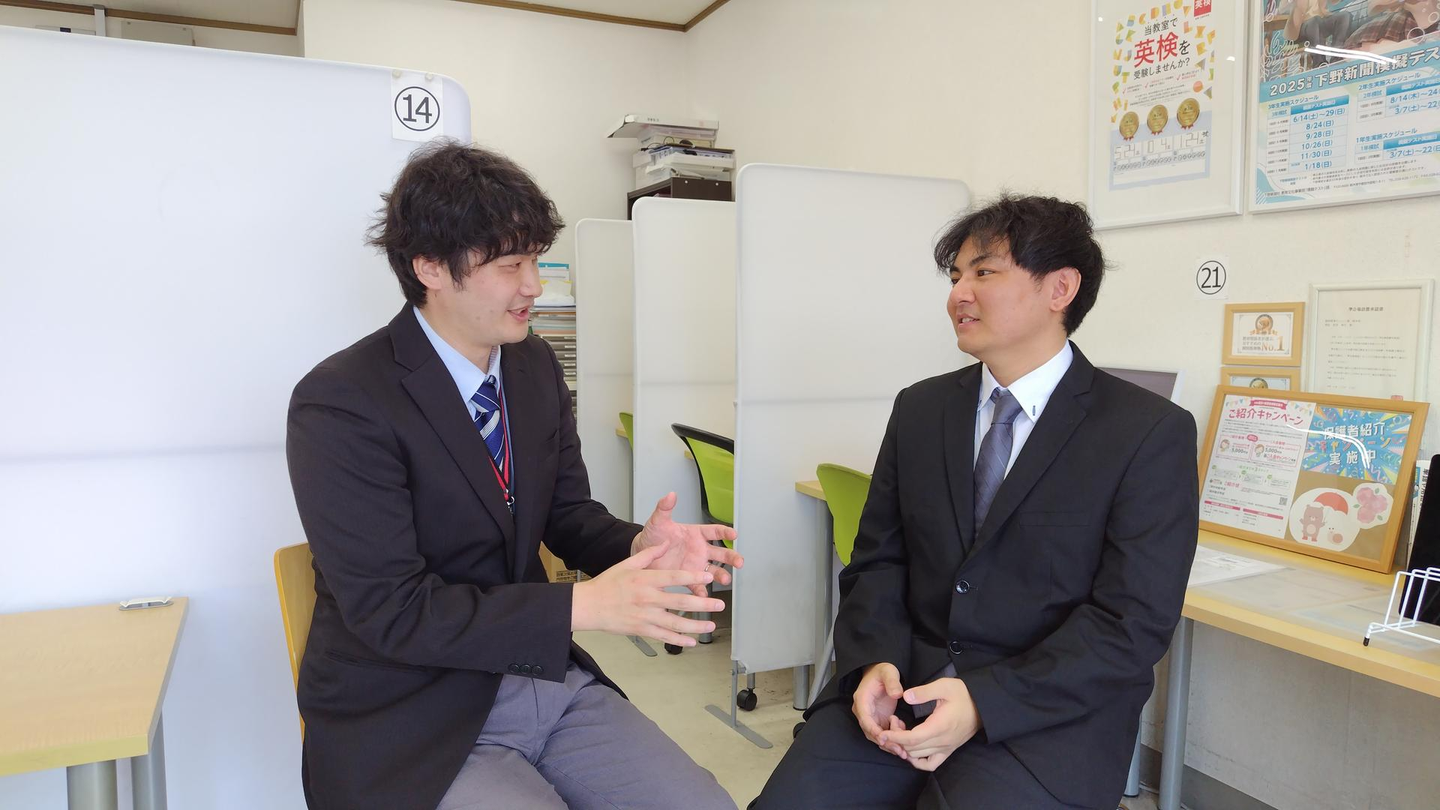 折笠:酒井さんは、指示をしなくても動いてくれる、とても信頼できるパートナーだと感じています。今後は鹿沼校をもっと盛り上げて、最終的には校舎長を任せられる存在になってもらいたい。そのためにも、今は二人三脚でしっかりと土台を作っていきたいと思っています。