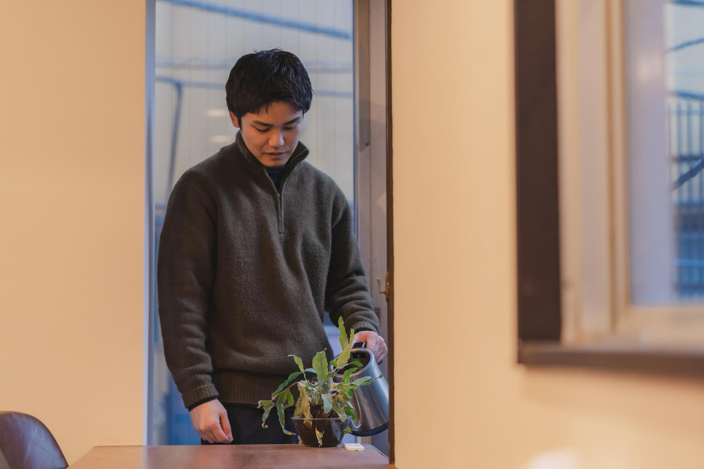 (↑共用スペースにある苔玉は、鈴木さんが気に入りセレクトしたもの。)
