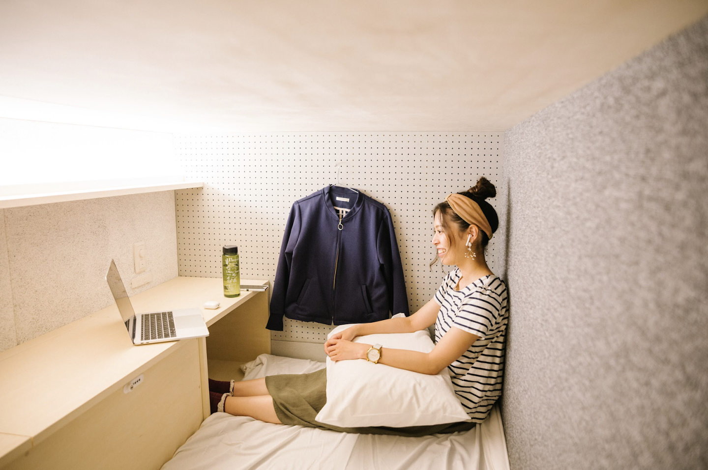 そして、そのカプセルハウスに住んでる方々がいらっしゃるんですね。でも、そこはホテルなんです。 つまり、賃貸契約を結ばずに宿泊で住むというのを、しかもミニマムに、超都心の人たちが住むことを想定したものから、unitoは始まりました。