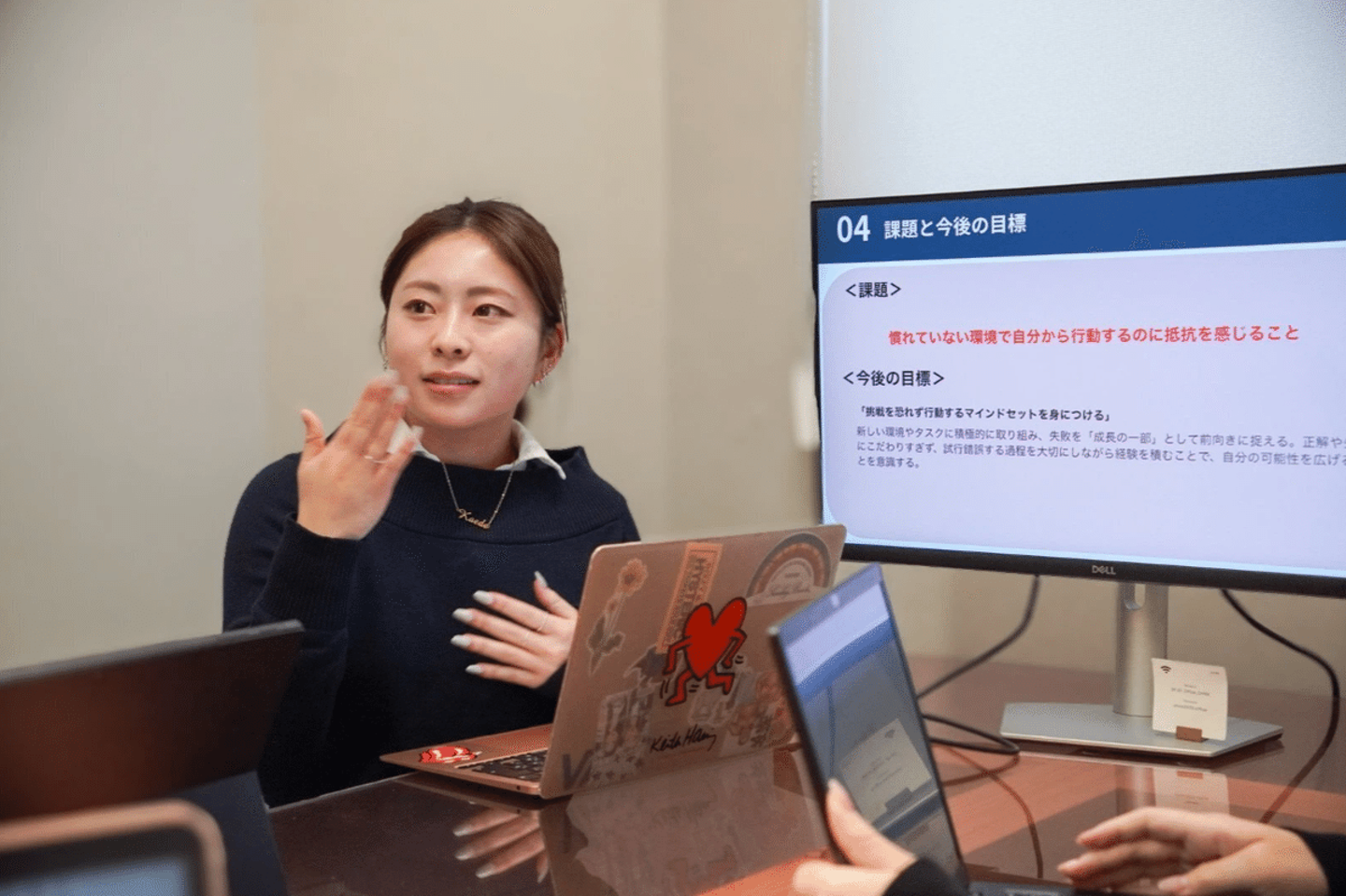 出勤時には、その日の目標を具体的に設定し、一つひとつ着実に進めることを意識しました。うまくいかない場面もありましたが、課題を言語化して解像度を上げること、そして周囲に助けを求めながら解決策を模索することで、問題解決に近づけたと感じています。