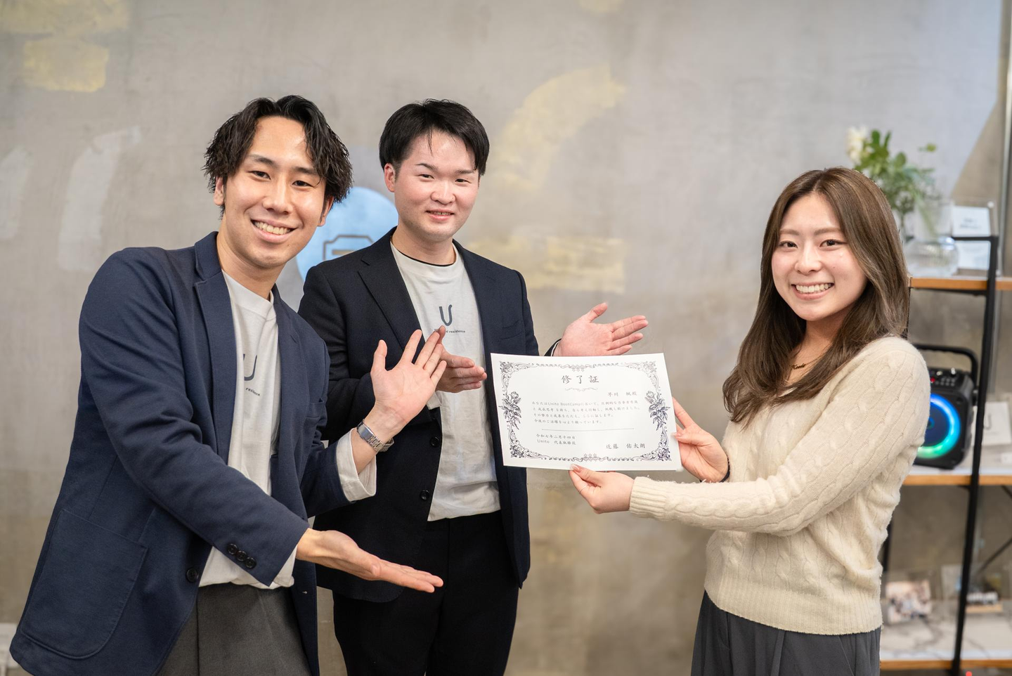 竹本「この3ヶ月間、それぞれ成長し、挑戦し、成長し、大きな成果を生み出してくれた1期生。皆さんの努力している姿勢は、私たちにとっても大きな力になりました。経験を糧にこれからも自信を持って前に進んでください。」