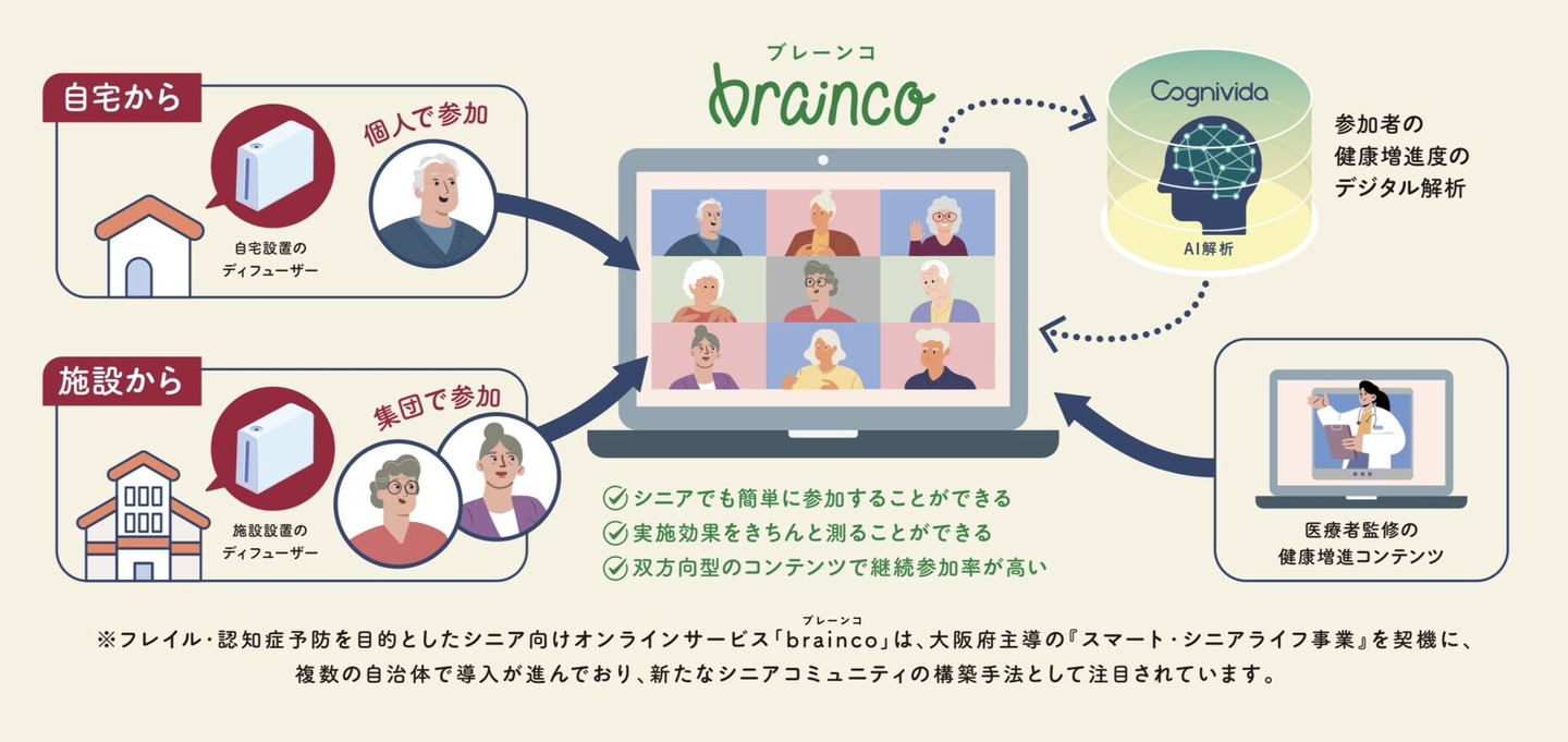 大阪関西万博に出展!認知症予防プラットフォーム「brainco」×香り伝送技術「香り伝送で広がる、オンラインのいきいき教室」体験展示開催