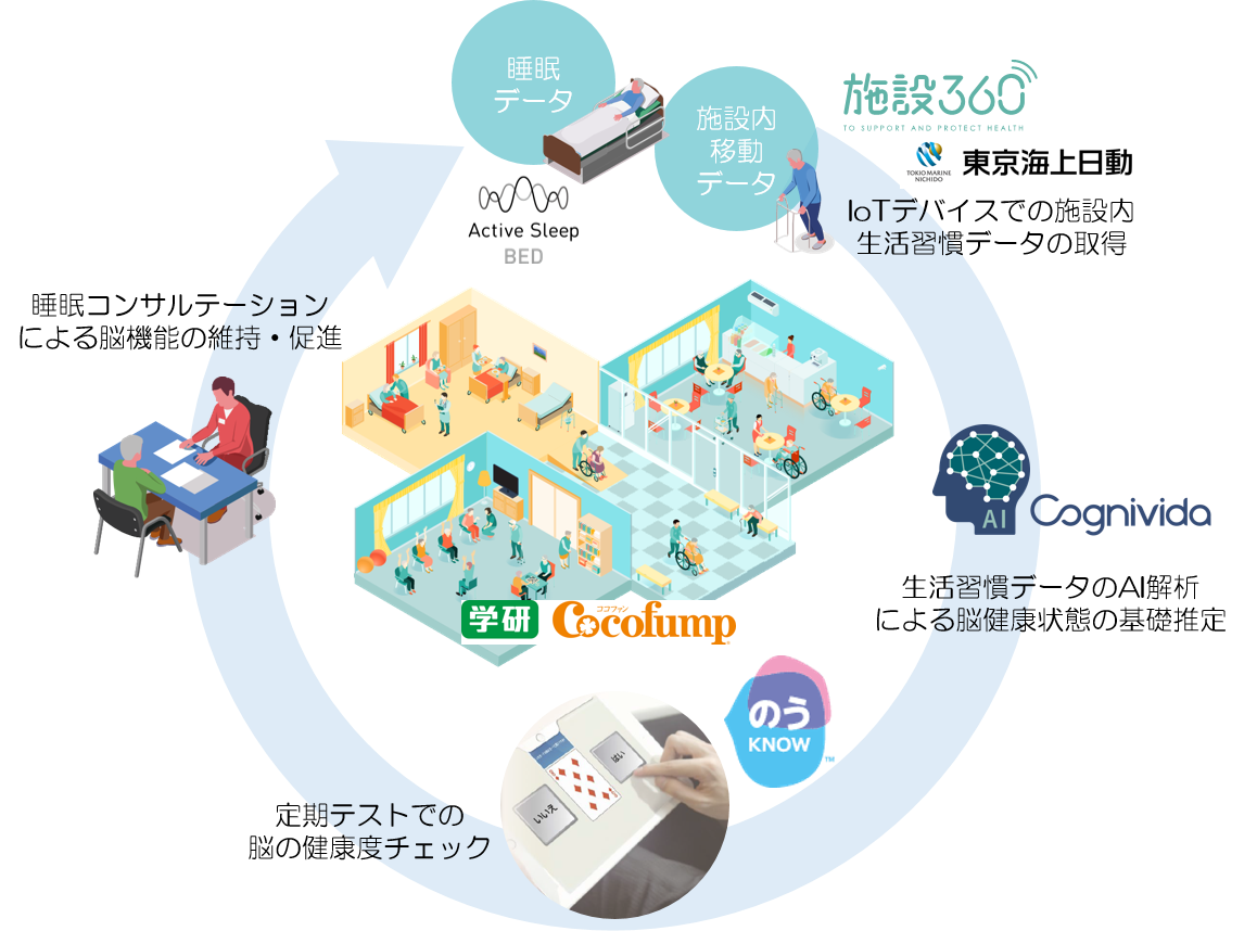 この度、ジョージ・アンド・ショーン株式会社(本社:東京都渋谷区、 代表取締役 井上 憲)は、株式会社学研ココファン(本社:東京都品川区、代表取締役社長兼COO:森 猛)、東京海上日動火災保険株式会社(本社:東京都千代田区、取締役社長:広瀬 伸一)、NTT PARAVITA株式会社(本社:大阪府大阪市中央区、代表取締役:中野 康司)との4社連携により、超高齢化社会を迎える日本において、高齢者施設での日常的な脳の健康状態のチェックと、睡眠改善を中心とした生活介入による、健康長寿延伸を実現のための各社サービスの連携に向けた実証を12月16日(木)より開始します。