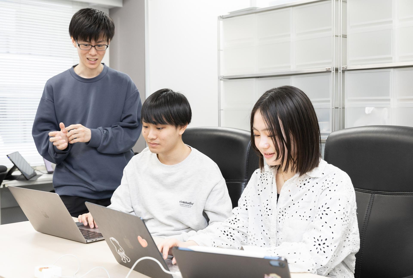 技術スキルももちろん大事だけど、それよりも「コミュニケーションがとりやすいことが大事」とのこと。お互いに助け合いながら成長できる環境だからこそ、「一緒に学びながら頑張れる人」にぜひ来てほしいと語ってくれました。