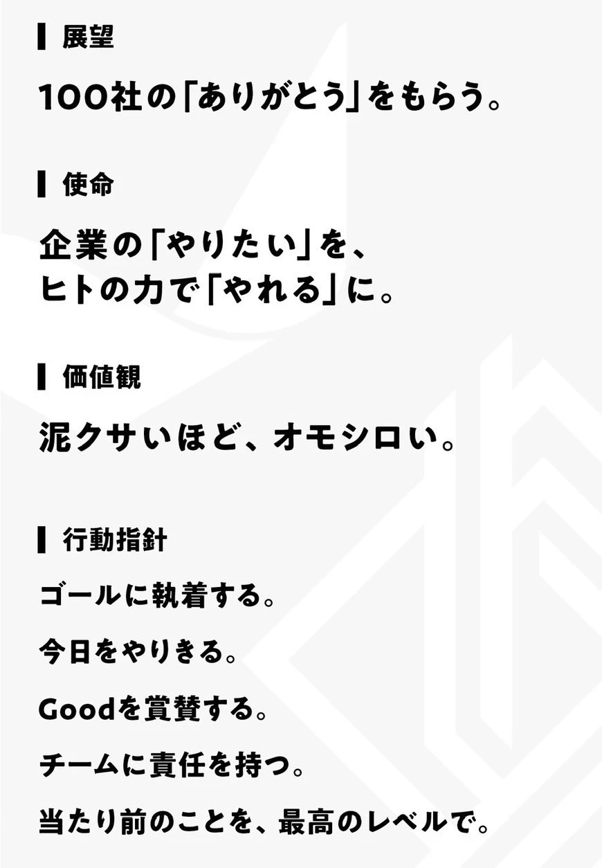 設定にあたり、Visionを「展望」Missionを「使命」Valueを「価値観」と定め、
