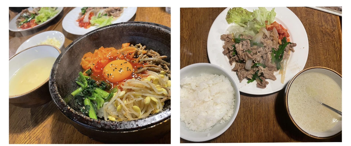 写真:石焼ビビンバ定(左)、牛バラスタミナ定食(右)