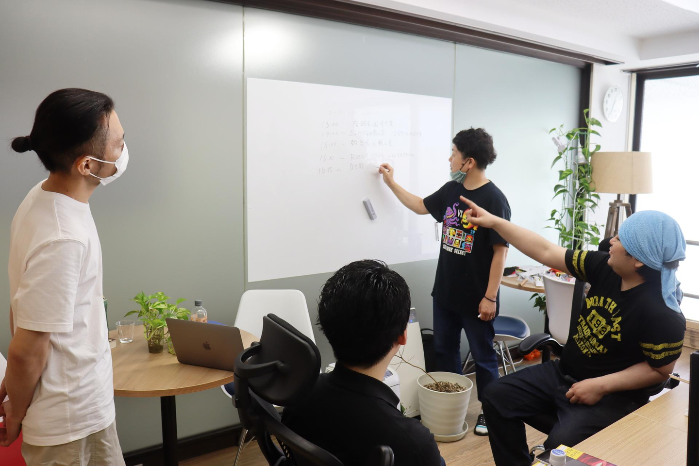 基本的にみんな在宅でのテレワークかクライアントの現場で業務に当たっているので、日々のコミュニケーションはオンラインになります。あとは月一回の帰社日ですね。