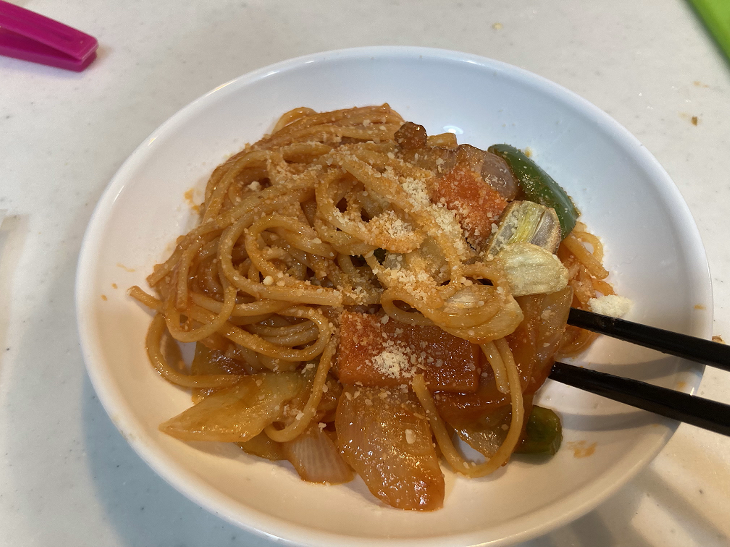 こないだ家族の夕食作りでナポリタン作ったんですよ。スパゲティナポリタン。