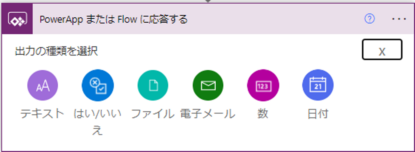 画像の通り、大きく6種類のデータ型を返すことができるのですが「数」だとPowerApps側のIf文でデータ型が一致しないエラーが回避できなかったのでテキスト型を使うことにします。