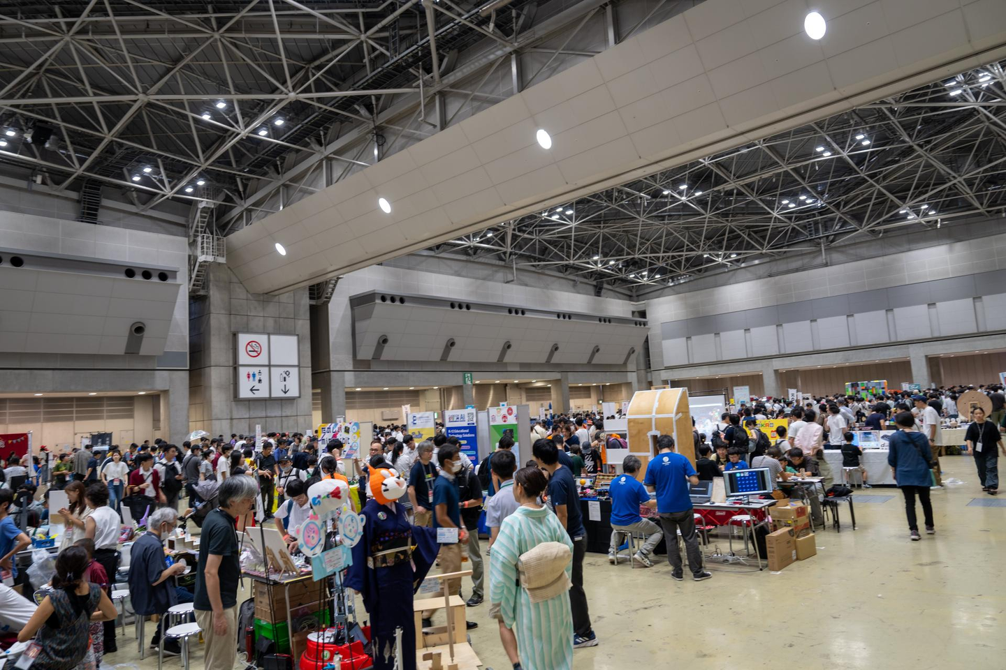 「 Maker Faire Tokyo 」は日本国内で開催される最大のMaker Faireの一つであり、毎年東京ビッグサイトで行われています。誰でも使えるようになった新しいテクノロジー(カードサイズの教育用コンピューター、3Dプリンター、AIなど)をユニークな発想で使いこなし、ロボット、自作楽器、乗り物、光るアクセサリや、おもちゃなど、さまざまな物を作り出すメイカー(モノを作る人)が集まり、作品の展示・デモや、参加者との交流を行います。