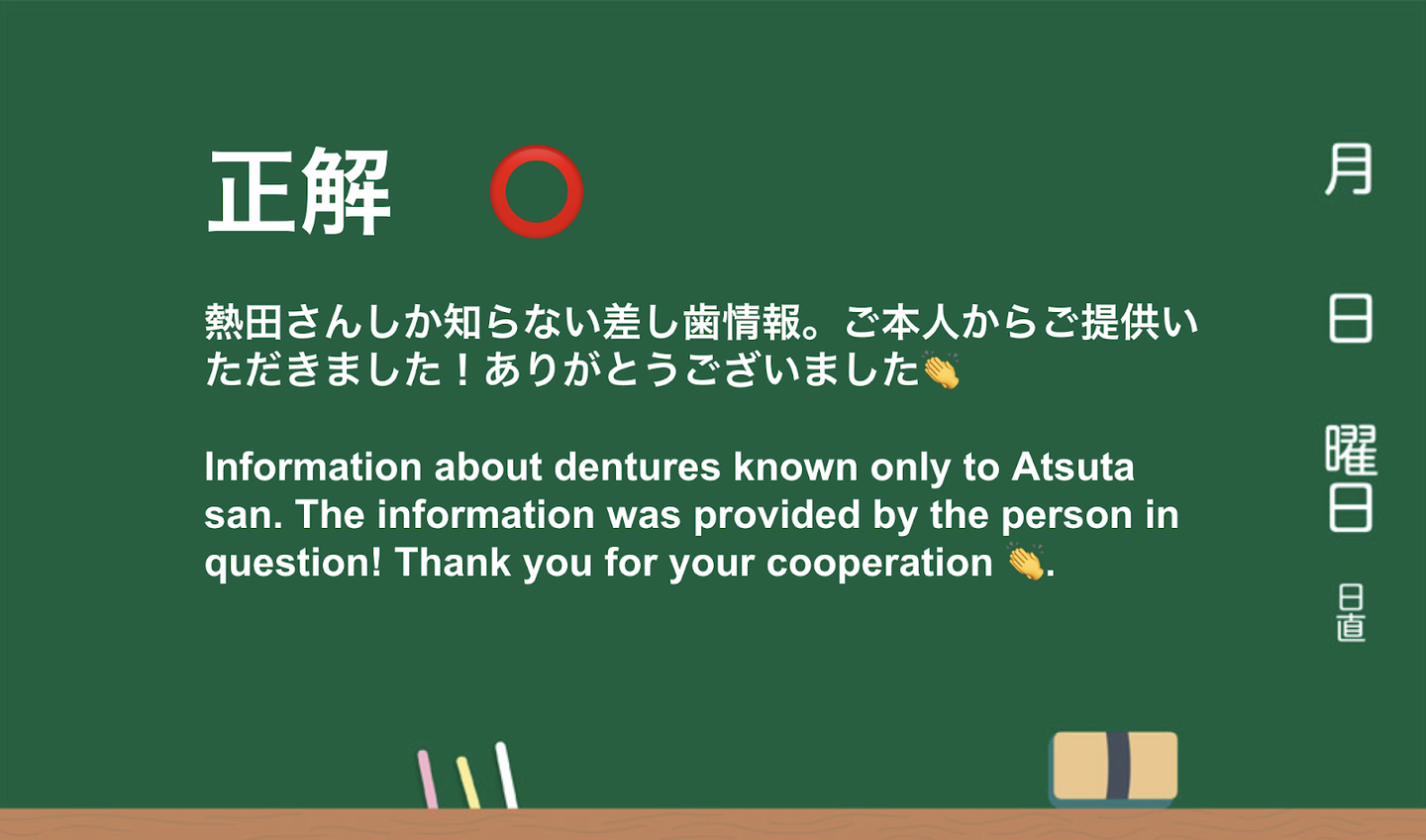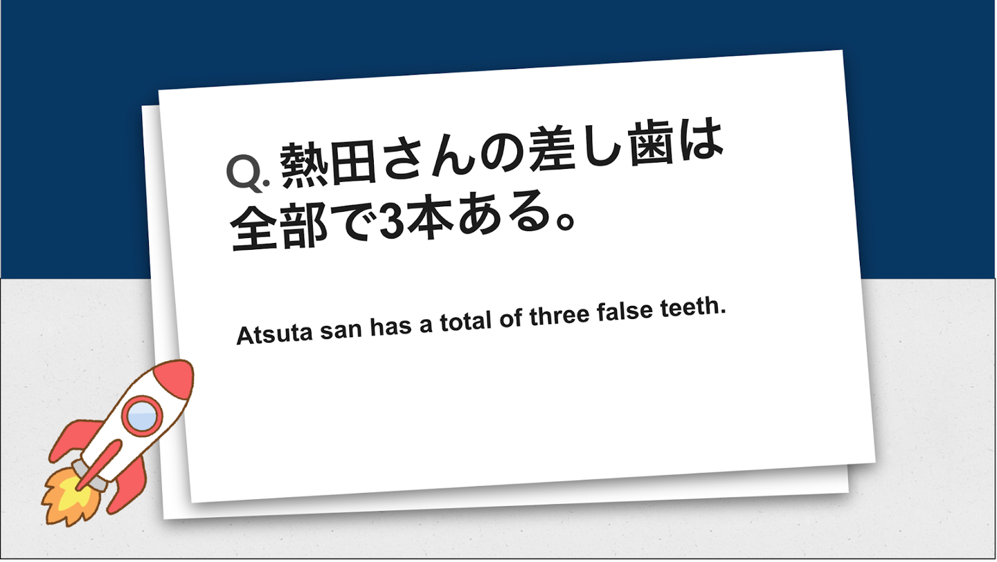 ▲この日、熱田さんの差し歯の本数が全社員に知れ渡った