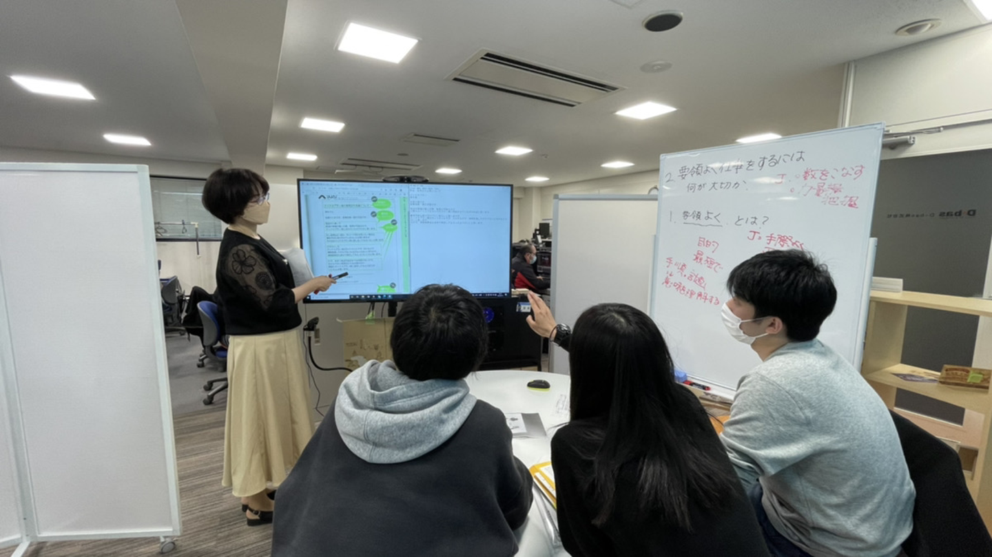 研修2~3日目は、ビジネス文書の基本や報告の仕方、連絡、相談の仕方等、より実践的な研修を行いました。