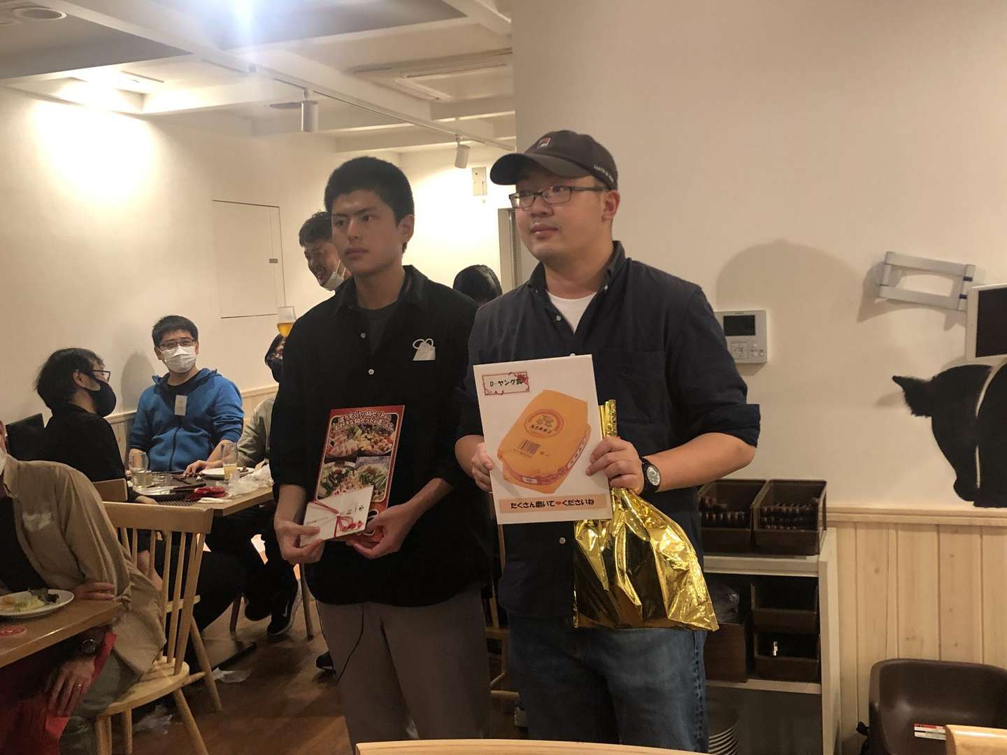 写真左:大津さん 写真右:朱さん社内表彰の後は記念撮影をして、最後はハロウィーンのお菓子を貰って、名残惜しくも散会となりました。