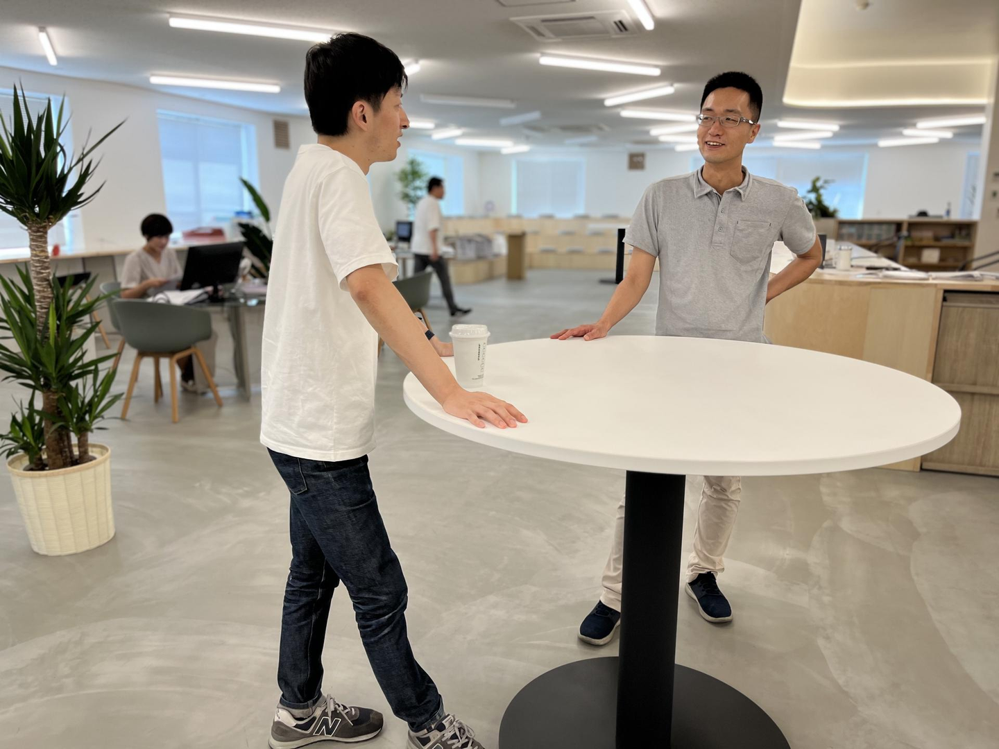 技術部は現在5名おり、全員何かしらの社会的なキャリアを経験して入社してきて、ざっくり建築系、機械系出身からのメンバー構成になっています。異業種のキャリアが同部署にいるので、業界違いでの見解の違いもありますし、自分にはなかった考え方や知識に出会ったりし、正直戸惑うこともありますが(笑)、多様な場面で各々の異なる力が集結し、結果的に良い力が形成されていると感じています。皆とても話しやすく、オフィスがフリーアドレスに変わってから更にコミュニケーションがとりやすくなったと感じています。質問などあれば気軽に聞ける環境なのはとてもいいですね。