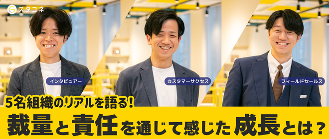 自分自身の役割を果たすことだけにとらわれるのではなく、部署を横断して補い合うことを大切にしています。それぞれの使命はありながらも “事業成長” は総力戦で遂行すること。企業全体を俯瞰して捉え自らが事業をつくる経験にワクワクできる方は、縦横ともに新たなポジションを手に入れるチャンスがあります。