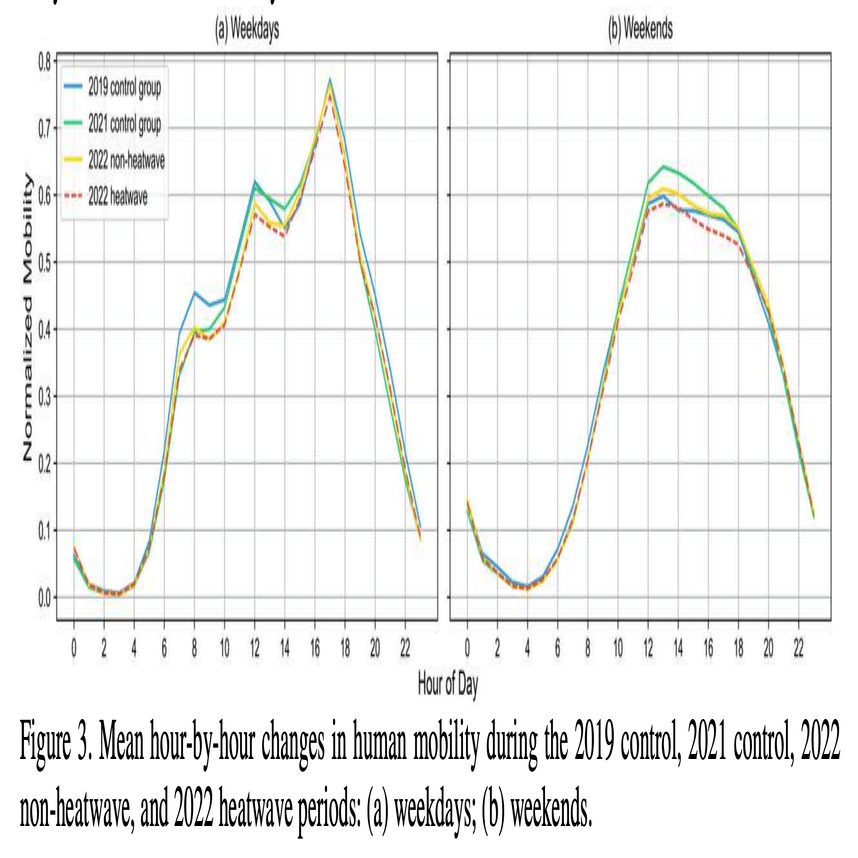 Renninger, A., Holubowska, O., & Blanchard, P. ,2025. Remote sensing and GPS mobility reveal heat’s impact on human activity across diverse climates. (arXiv:2409.20437v2)