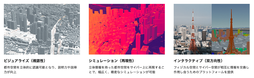 国土交通省は、3D都市モデルのもたらす主な価値を以下の3点に整理しています: