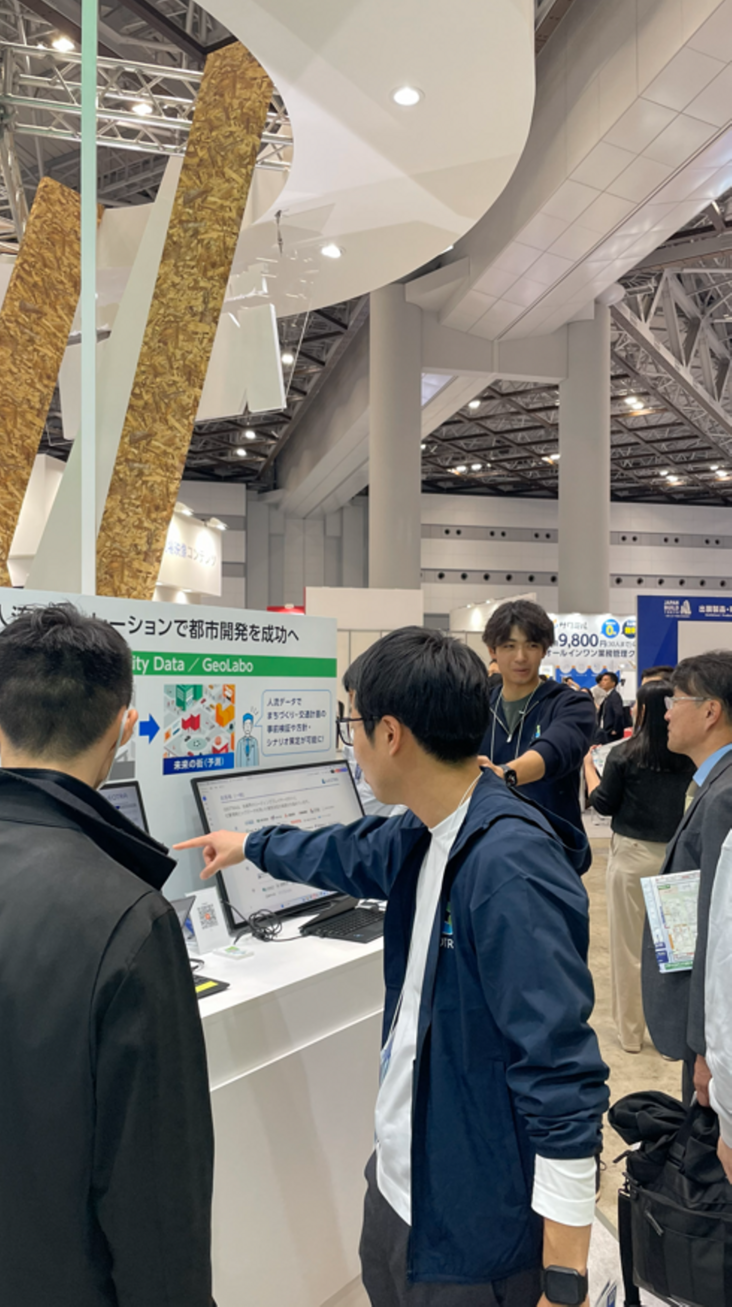 そのうえで、来場者の方々が抱える実際の課題──「再開発後の効果をどう測るか」「工事中の安全管理をどう強化するか」「商業施設の動線設計をどう最適化するか」──といったテーマについて、その場で人流データ活用の可能性を一緒に探る、双方向型の展示を心がけました。