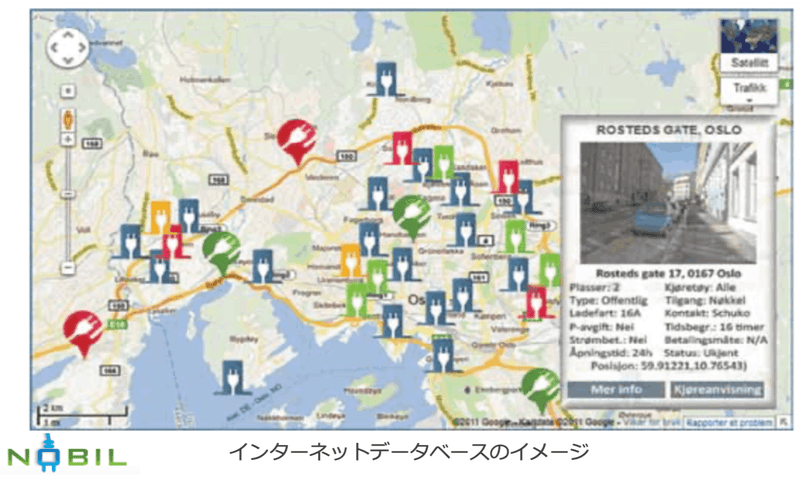 EV利用者が、リアルタイムで他の電気自動車利用者の充電状況や空き充電スポット、周辺道路の通行量等を、「NOBIL」という公営のインターネット・充電所データベースを通じて、把握できるようにしました。