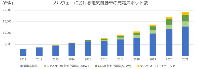 図2:ノルウェーにおける電気自動車の充電スポット数