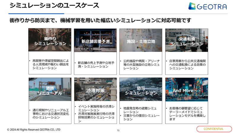 GEOTRAが取り組むシミュレーションのユースケースは、街づくりから防災まで多岐に渡ります。