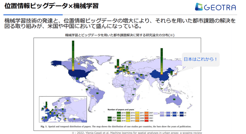 今後、日本においても、位置情報×機械学習の領域が発展していくことが見込まれており、GEOTRAは同領域に注目しています。