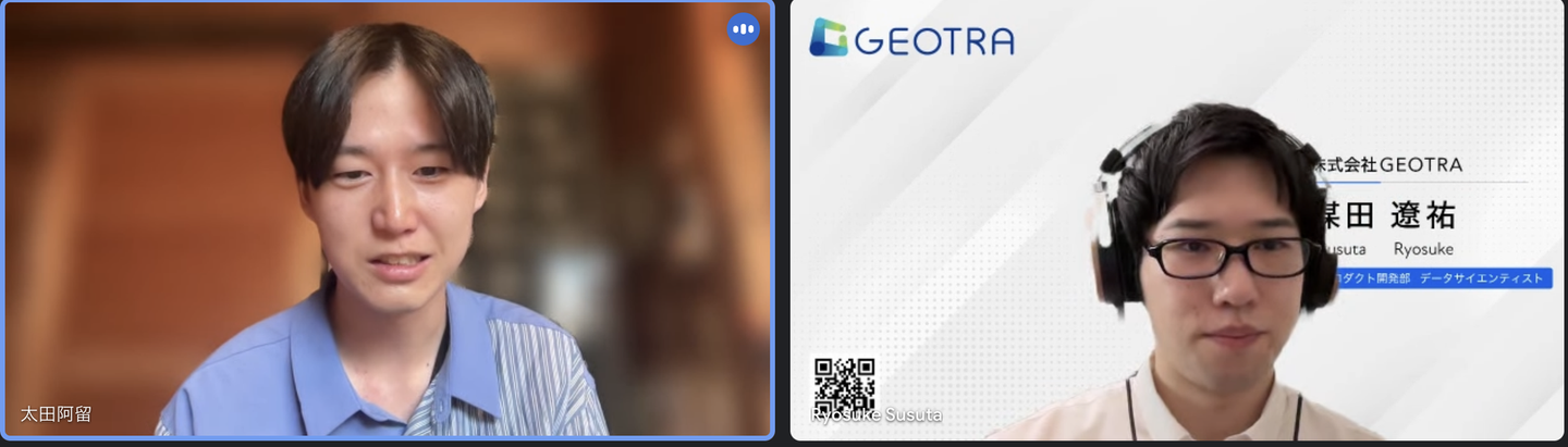 煤田:お互いにwin-winである状態が理想だと思うので、GEOTRAとして提供できるものがありつつ、データサイエンティストの方々の知見を活かしてもらいつつ、いい関係を築けているのかなと思っています。