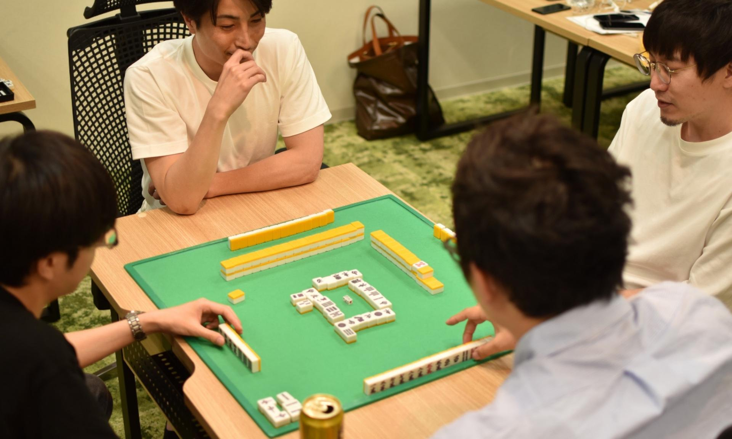 4月に入社したばかりのY世代最終年のエンジニア川田くんの呼びかけで発足。隔週水曜日に開催しています。なんとメンバーは11名と参加率多め✨麻雀は老若男女とわず幅広い世代に親しまれていて、健康麻雀とも呼ばれるいいことづくめ✨サイバーエージェントの藤田晋社長がチェアマンを務めるM.LEAGUEもあります。