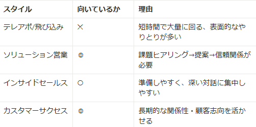 特にテレアポや飛び込み営業は向いてないそうです笑