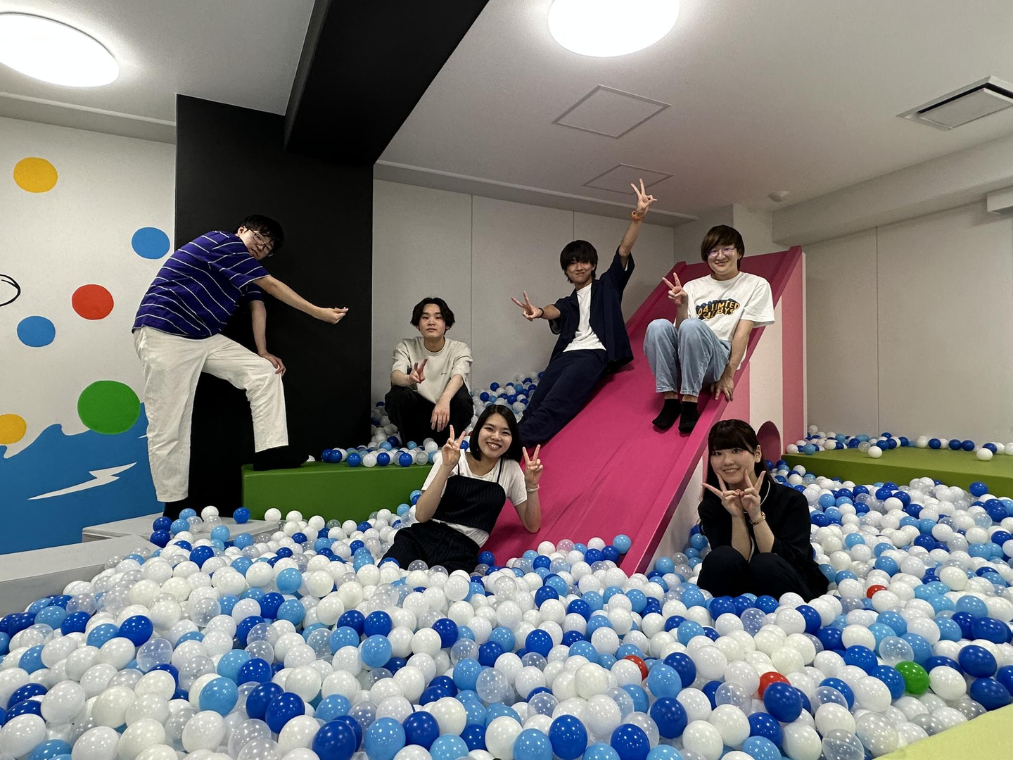 顔出しOKだったので参加者の方に最後、弊社のボールプール&滑り台にて集合写真を撮らしていただきました(笑)