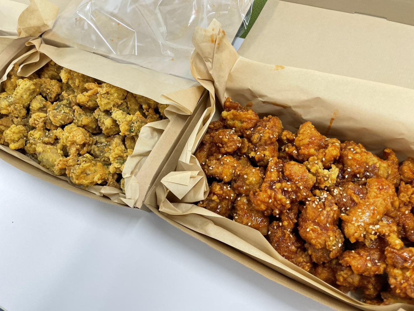 ヤンニョムチキンと、シンプルなサクサクチキン。(ビジュアル最高)