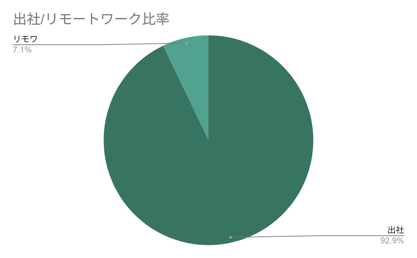 出社比率92.9%、リモートワーク比率は7.1%と圧倒的に出社比率の高い会社となります。