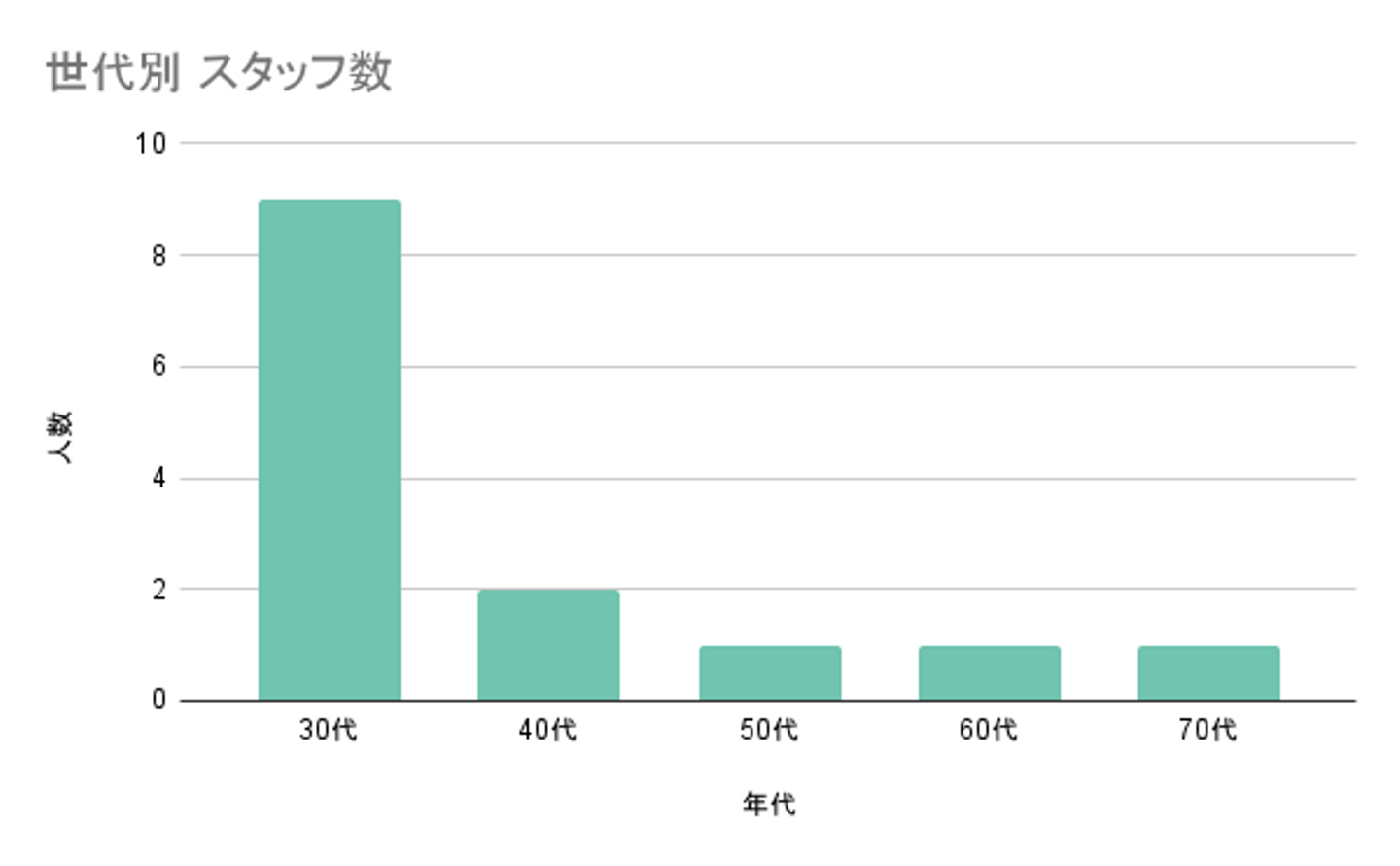 世代別でみると30代が9名と圧倒的。ベテラン豊富な方々に支えられて30代が仕事を取ってくる、という構造かもしれません。