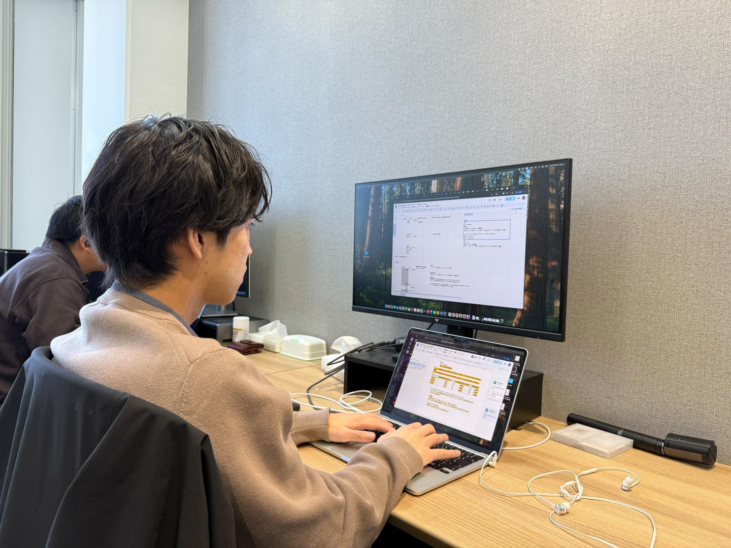 現在は、広告運用の実務を中心に、営業資料の作成やLPの制作など、幅広い業務に携わっています。入社してまだ1ヶ月ですが、すでにクライアントとのミーティングにも参加し、自分が運用する案件について直接お話しする機会もいただいています。