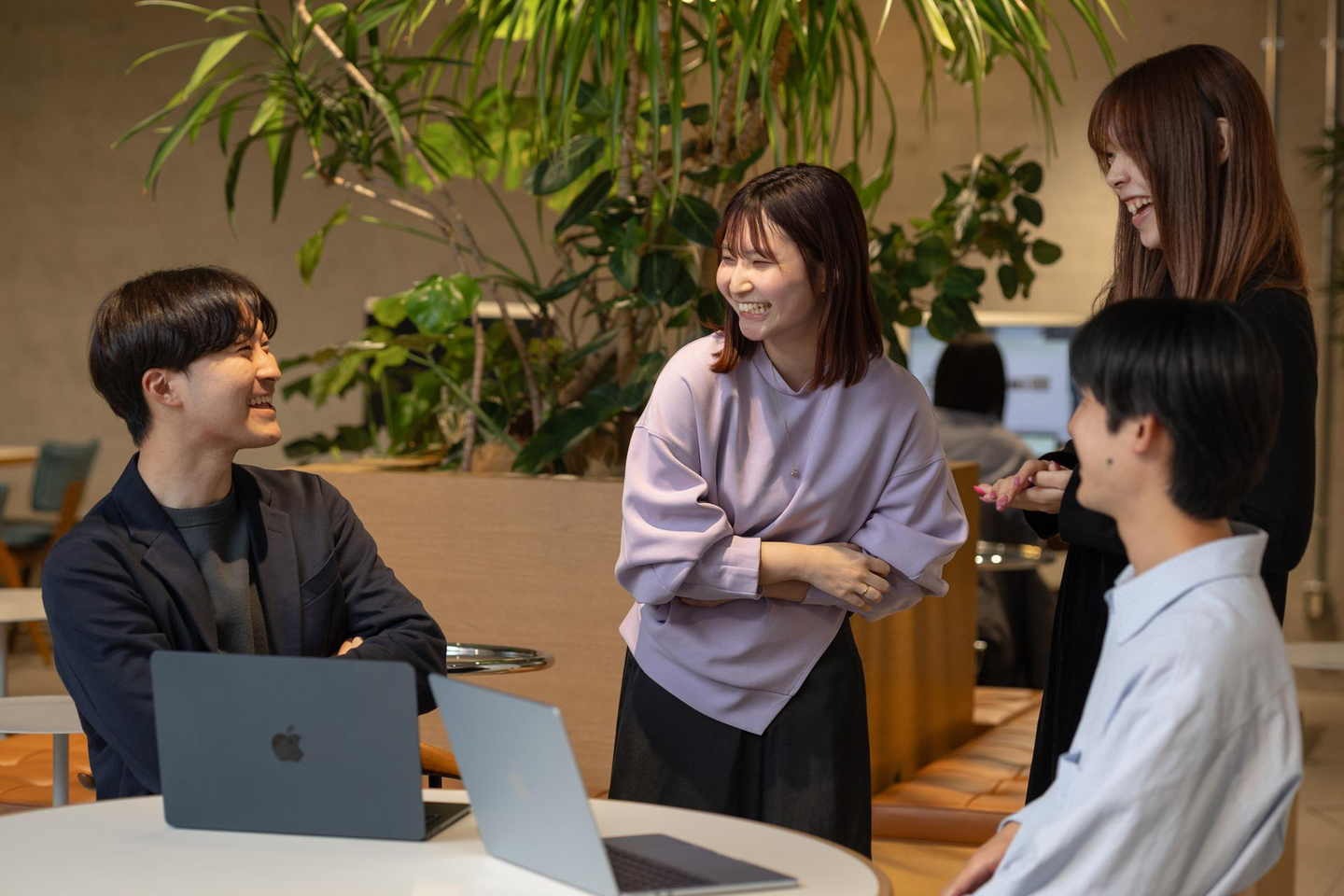 一言で言うと、メリハリがすごいですね。仕事中は全員が高い集中力で、プロとして淡々と業務に向き合っています。でも、ふとした瞬間に笑いが起きたり、代表の小木曽がいじられたり、すごくフラットな空気が流れています。メンバー同士はあだ名で呼び合っていて、年齢や役職に関係なくフランクな関係性で話しています。中途で入ってきたメンバーが最初はびっくりするくらいです。でも、そこに嫌な感じは全くなくて、お互いへのリスペクトがある上での近さなんです。心理的安全性が高いので、「これどう思いますか?」と相談もしやすいですし、代表が近くにいるだけで安心感がある、そんな温かい組織です。
