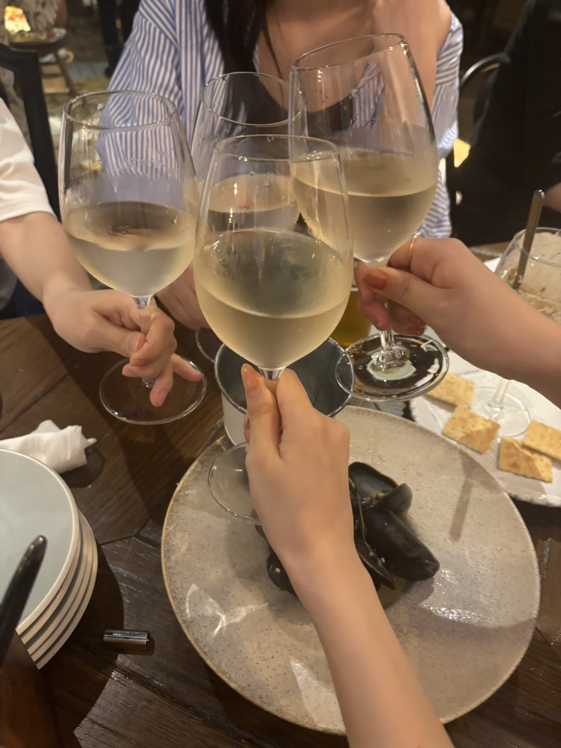 経理と営業事務の女性社員と席が近かったので、みんなでワインを頼んでプチ女子会も行って楽しかったです!早くまた飲みたいですね~~~🍷