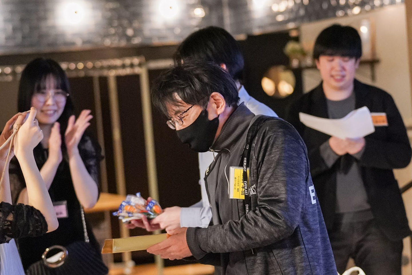 優勝者には景品が渡され、会場では拍手が沸き起こっていました。