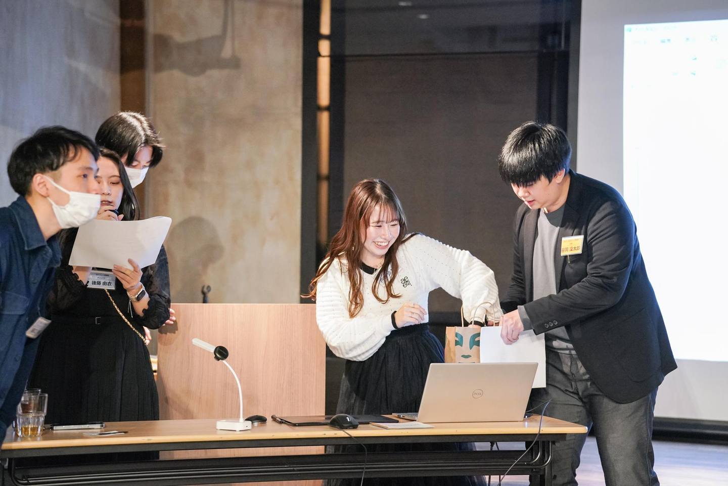 司会から結果が読み上げられます。社員たちもこの瞬間はドキドキしながら注目していました……!