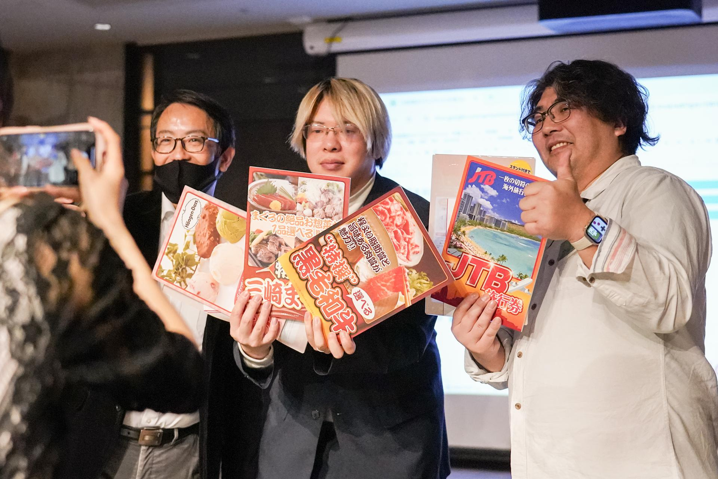 二位・三位の方にも旅行券やギフト券をプレゼント。どちらも部門長の方でした!