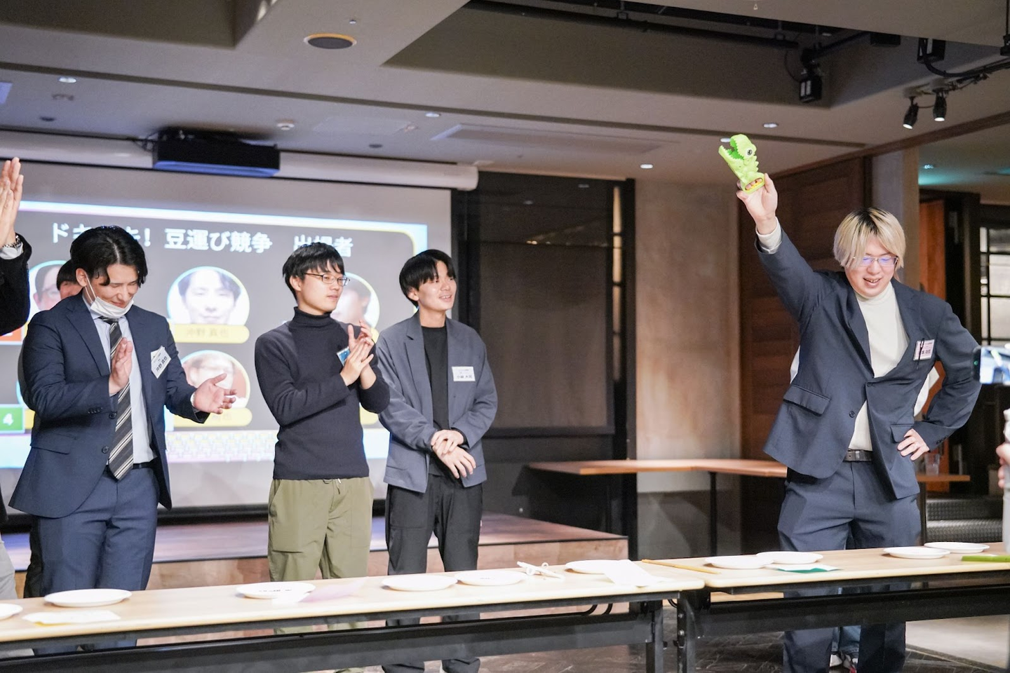余興の出場者以外も『社員ダービー』での予想が当たれば、景品をもらえるチャンスがあるので、この段階で会場はかなり盛り上がっていました!