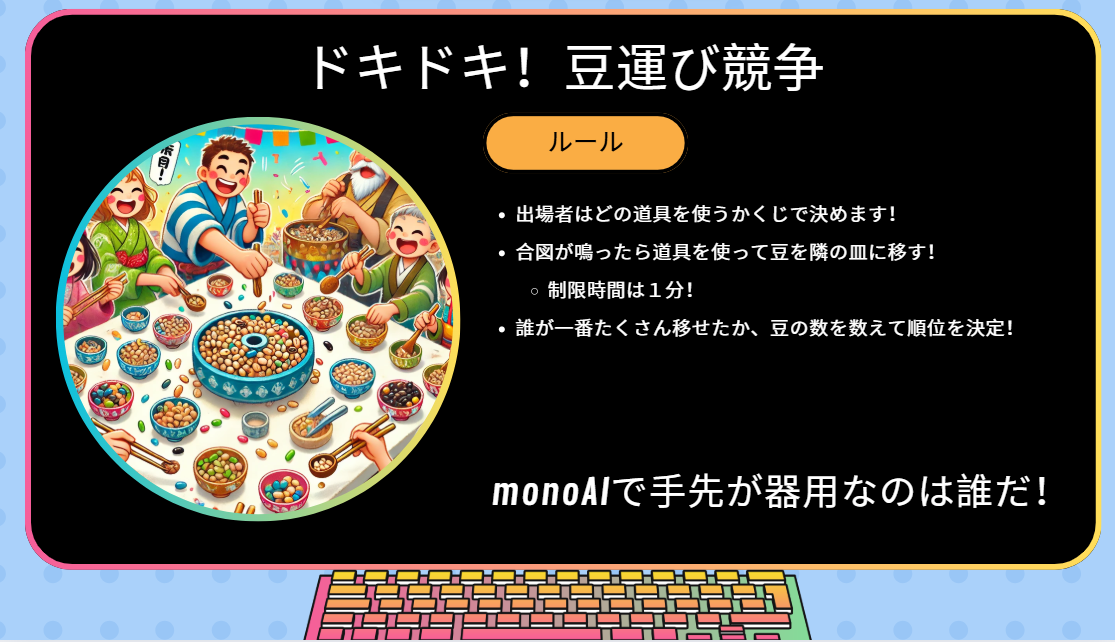 ★二番目の競技『ドキドキ!豆運び競争』!