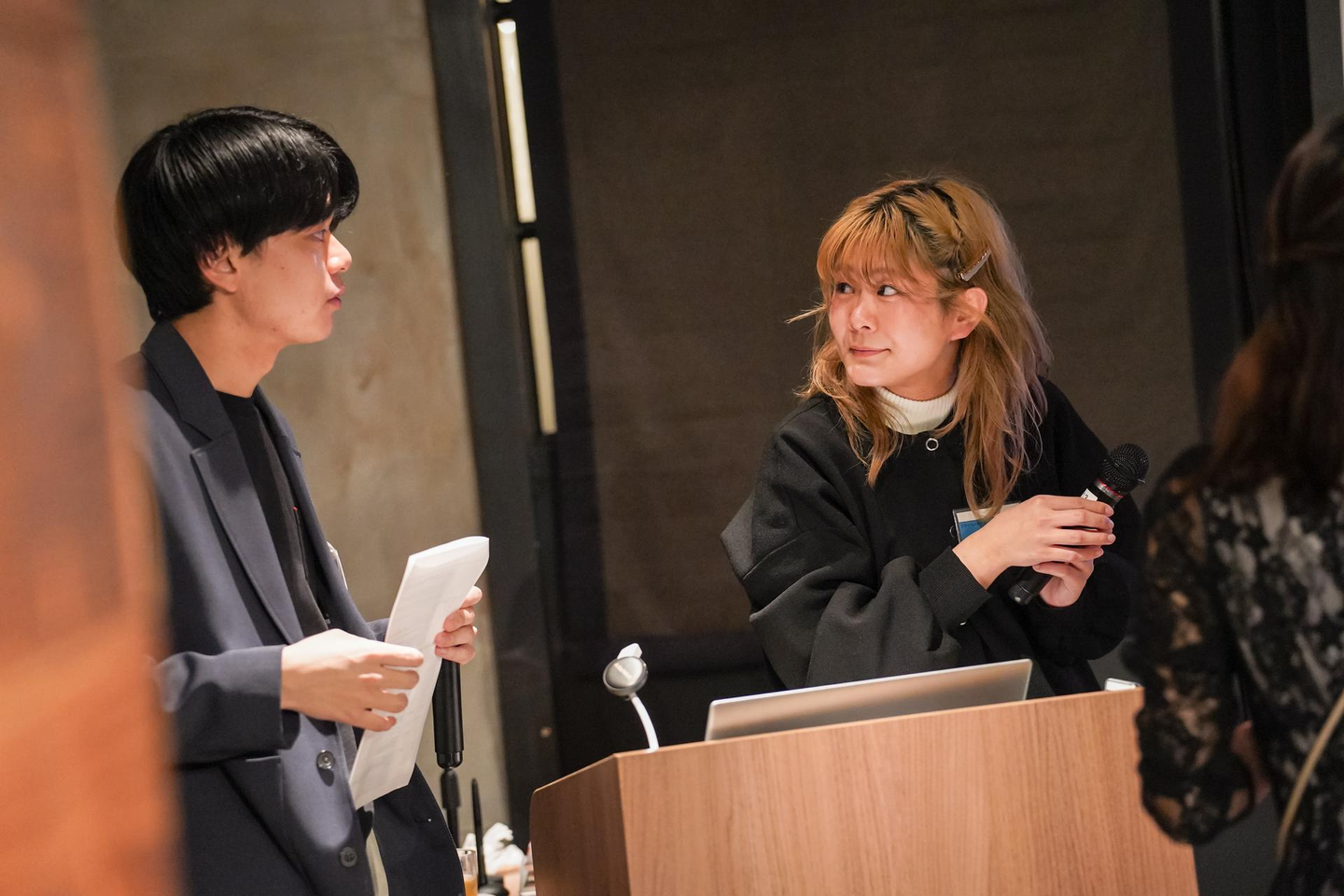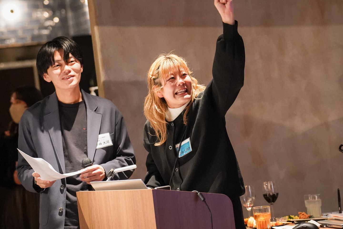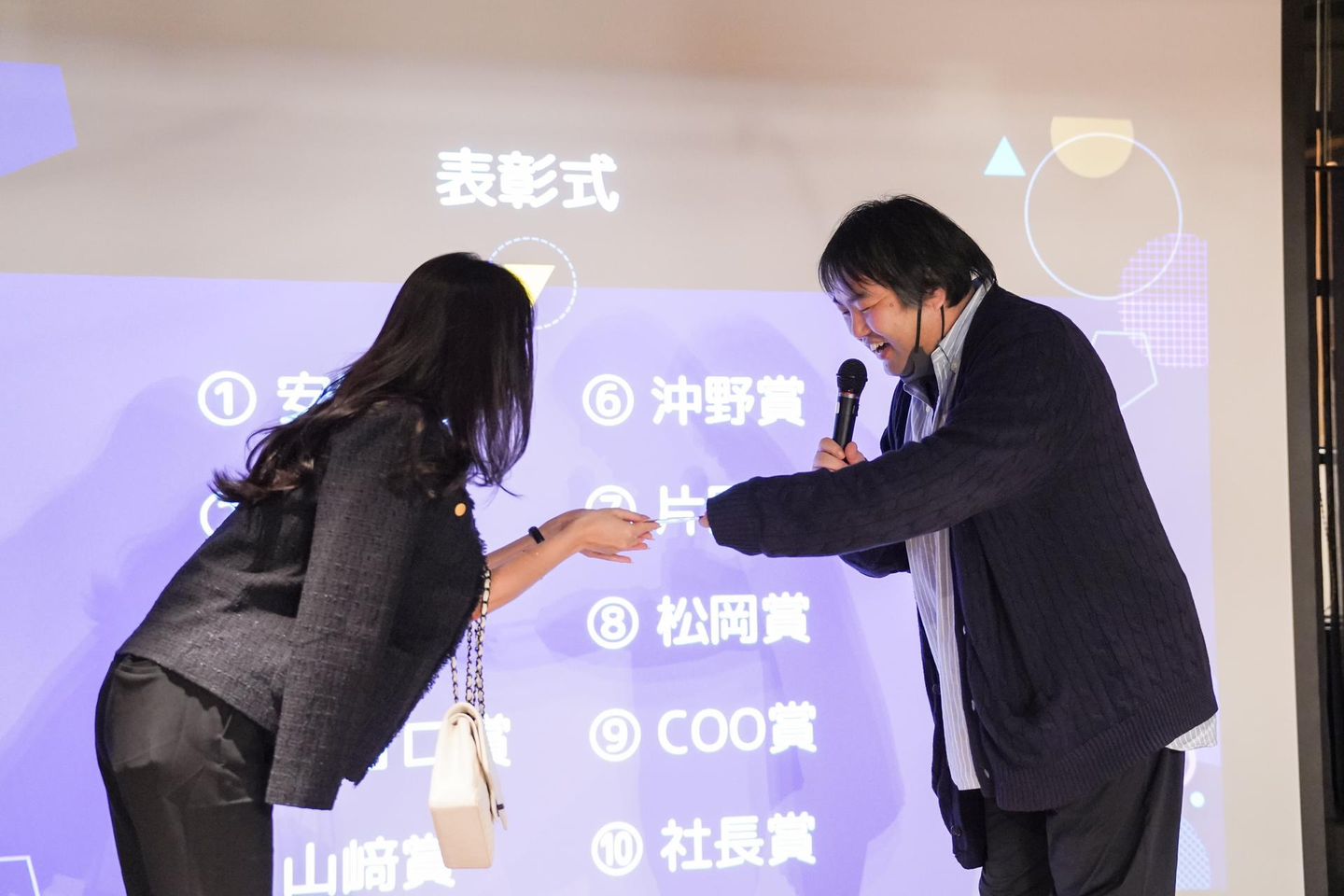 表彰式からは全体の司会担当、22新卒の営業と23新卒のディレクターが進行します。