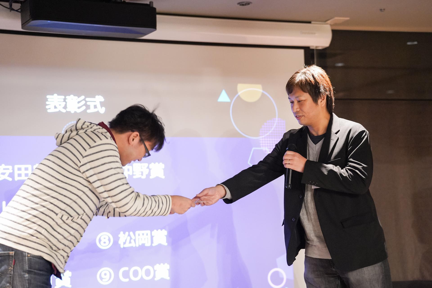 選ばれた社員は、少し照れていたり、驚いたりしていましたが、やはり表彰という名誉あるものなので皆笑顔でステージへ向かっていました。