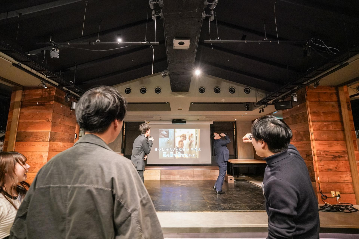 歌いたい人が任意で歌う方式で、それ以外のメンバーは歌にノったり、歓談をするなど自由な雰囲気でした。
