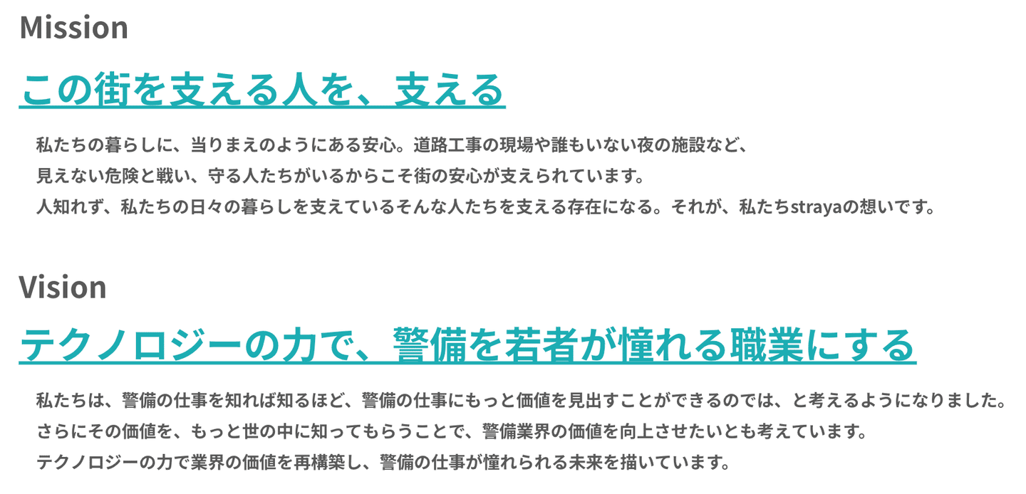 株式会社strayaは警備会社・警備員がもっと輝けるように、 警備業界を取り巻く様々な不自由から解放していきます。