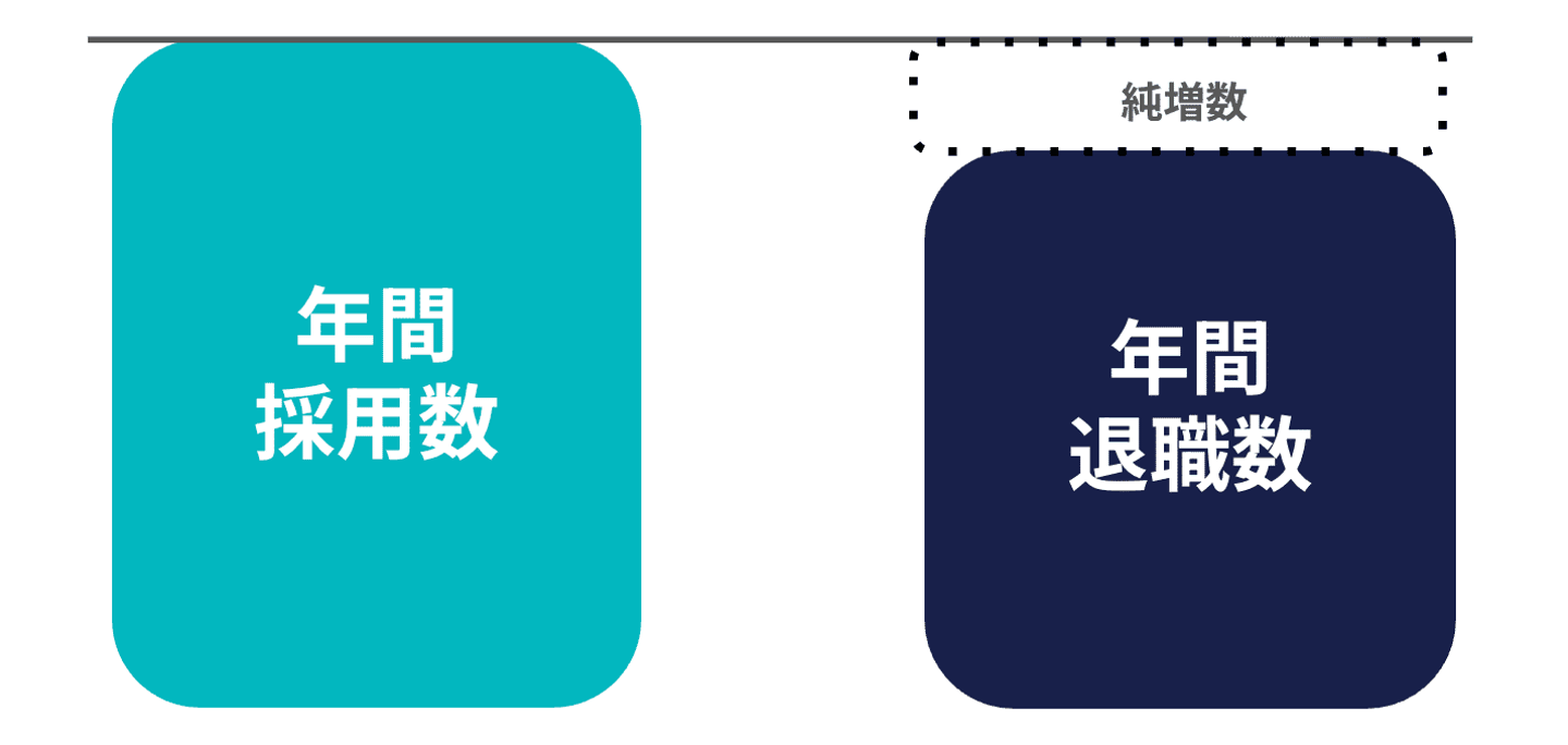 年間採用数≒年間退職数となっており、採用が掛け捨てな状態に