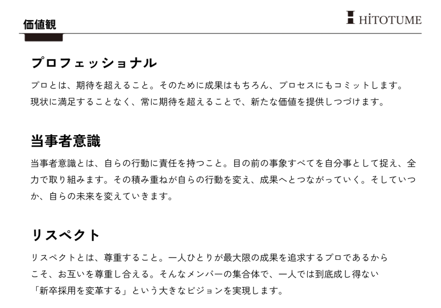 木山代表:私たちが大切にしているのは価値観、バリューの部分です。「プロフェッショナル」「当事者意識」「リスペクト」という3つの価値観を掲げており、これらを体現できる、共感できる人とともに働きたいと考えています。