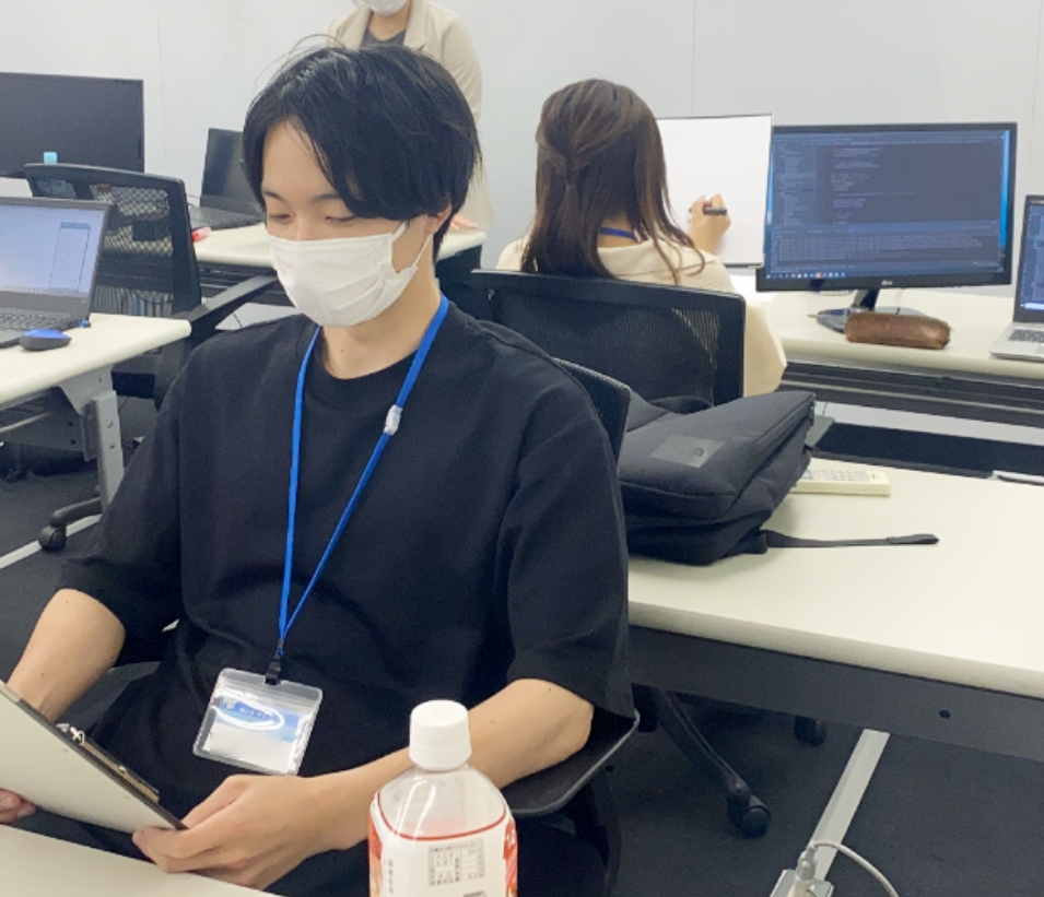 ※ちなみに私服なのはたまたま片付け作業があったからで、普段は研修期間中もスーツでお願いしています。