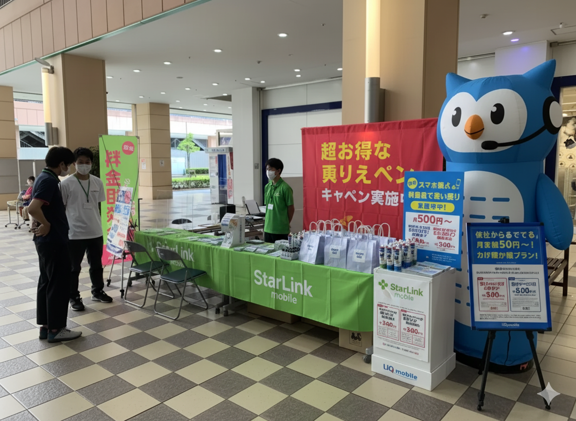 携帯の通信回線の販売営業です!ショッピングモールの一角で、携帯のキャリアの案内をしている人とか見たことありませんか?あれです!