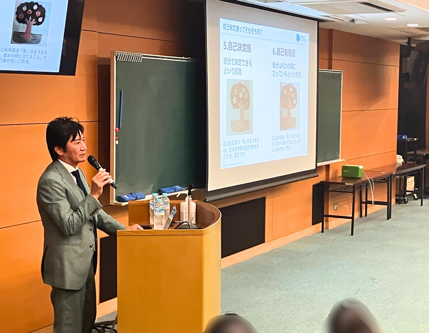 自己概念や自己肯定感の違いを解説し、日々の思考の積み重ねが人生の可能性を大きく広げることを代表自身が体現したからこそ、これからの可能性を秘めた若者たちに伝えました。